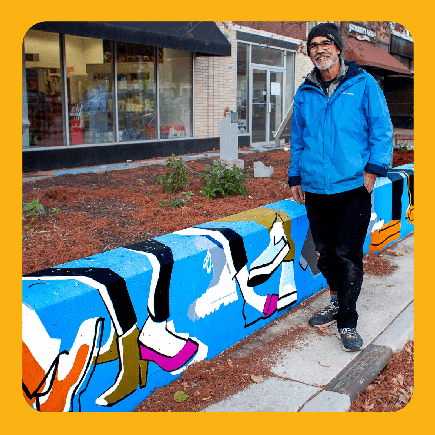 Stamps Lecturer II Bill Burgard and alumna Michelle Inez Hinojosa (MFA ’23) have received 2025 Golden Paintbrush Awards for public art projects created in the city of Ann Arbor. Presented every two years, the awards recognize individuals, organizations, and projects that bring creativity, civic engagement and artistic excellence to public spaces across the city.