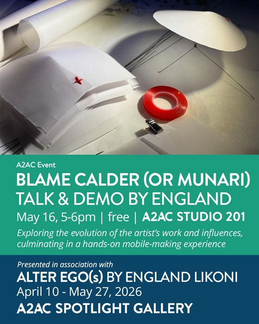This Ann Arbor artist talk and demo from ENGLAND begins with a brief introduction to the practice and the evolution of its visual language, followed by a presentation of the latest piece, CALDER MADE ME DO IT, as a moment of trying something new and breaking free. The talk explores the work of Alexander Calder and Bruno Munari. Calder’s work Continue Reading