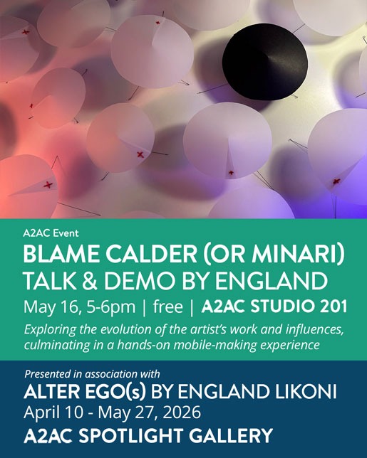 This Ann Arbor artist talk and demo from ENGLAND begins with a brief introduction to the practice and the evolution of its visual language, followed by a presentation of the latest piece, CALDER MADE ME DO IT, as a moment of trying something new and breaking free. The talk explores the work of Alexander Calder and Bruno Munari. Calder’s work Continue Reading