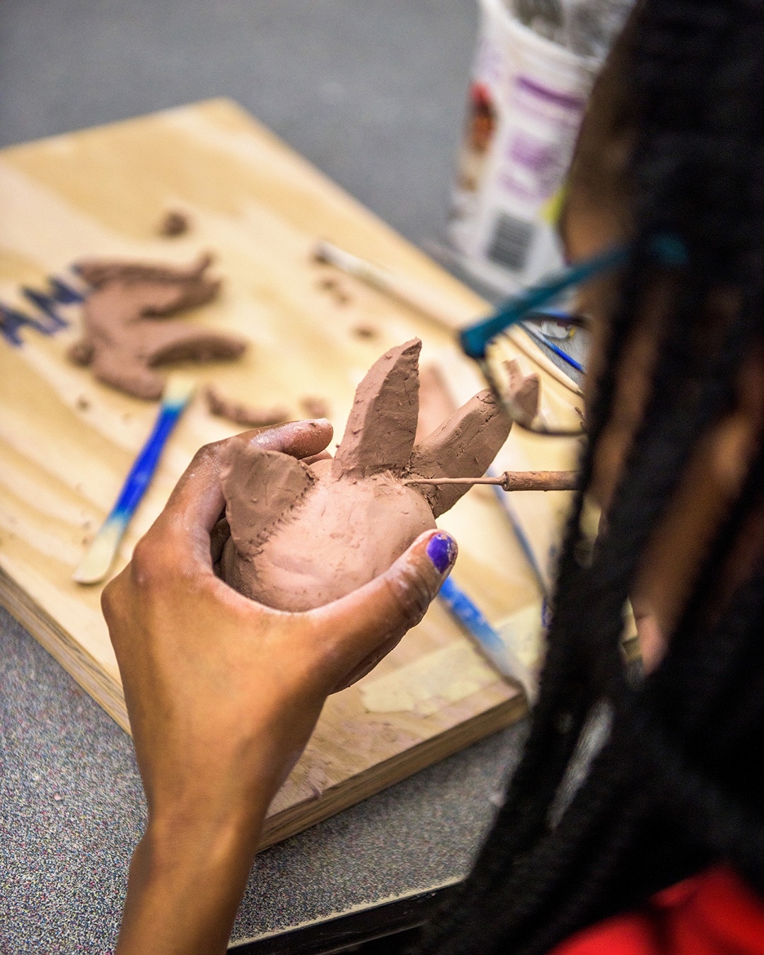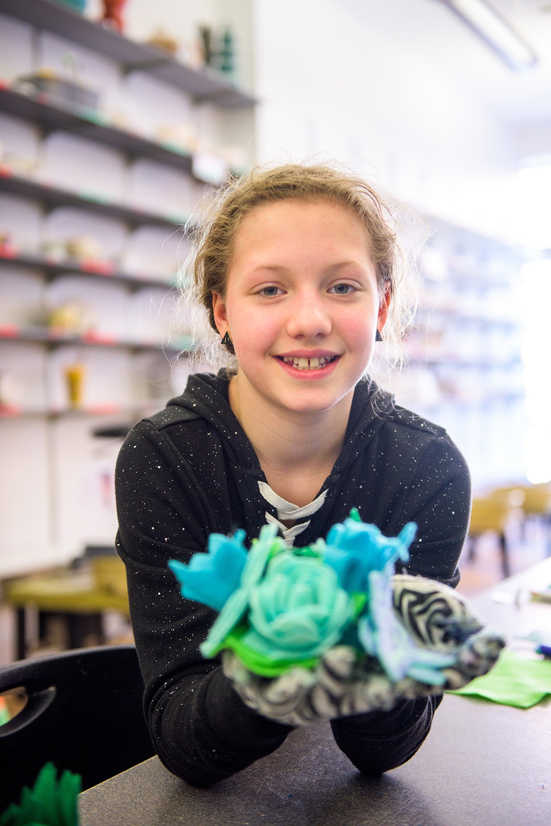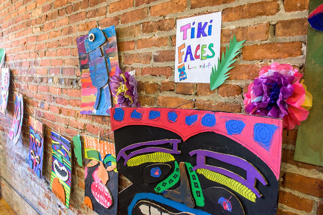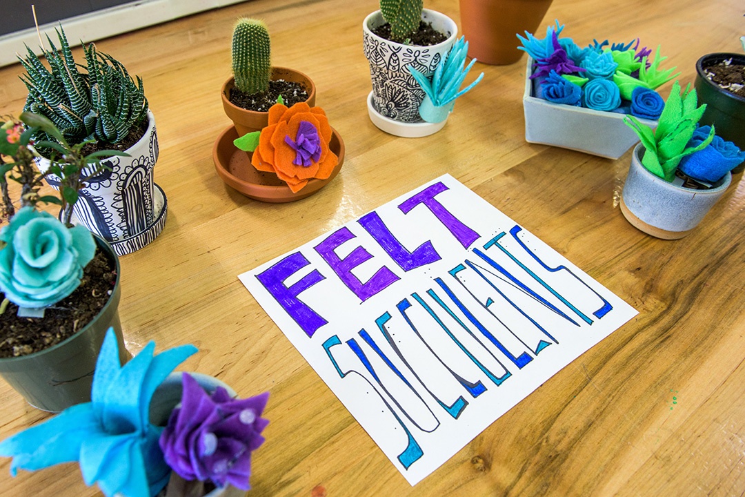 It may be gloomy outside, but it was sunny indoors at Winter Break Art Camp! Our theme was "Tropical Wonderland". Clay campers stretched their imaginations and sculpted super cool sea creatures and tropical tiles. Creativity campers turned up the heat as they worked together to create a giant rainforest. Our youngest campers made dazzling foil fish drawings and starfish necklaces, while older campers worked hard on tiki masks and giant flowers. Special guest soft-sculpture artist, Emily Schnellbacher, shared her artwork with us and led a fantastically fun felt flowers and succulents projects for all the campers.